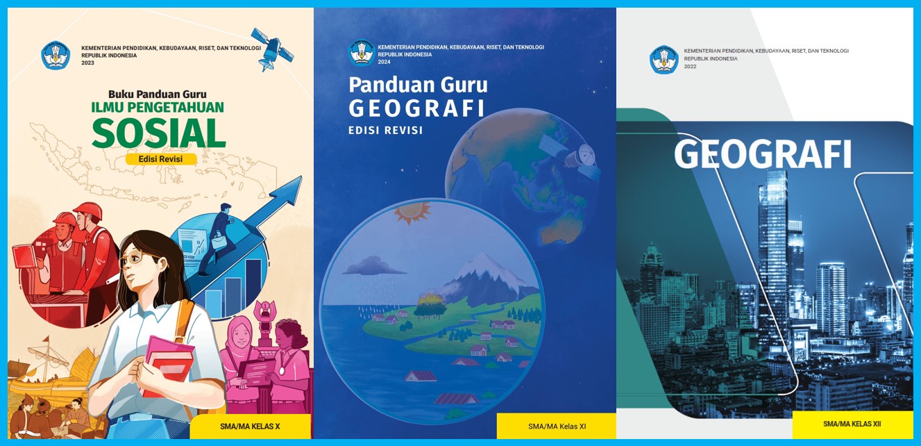 Pemerintah telah menyediakan beberapa acuan atau contoh buku yang bisa dijadikan rujukan. Dalam penyusunan buku geografi, tentu perlu mempertimbangkan berbagai pedoman yang telah ditetapkan, seperti keterkaitannya dengan penguatan Profil Pelajar Pancasila. Berikut beberapa buku geografi dari Kementerian Pendidikan dan Kebudayaan yang dapat Bapak/Ibu guru gunakan dalam kegiatan pembelajaran yang meliputi buku guru dan buku siswa.