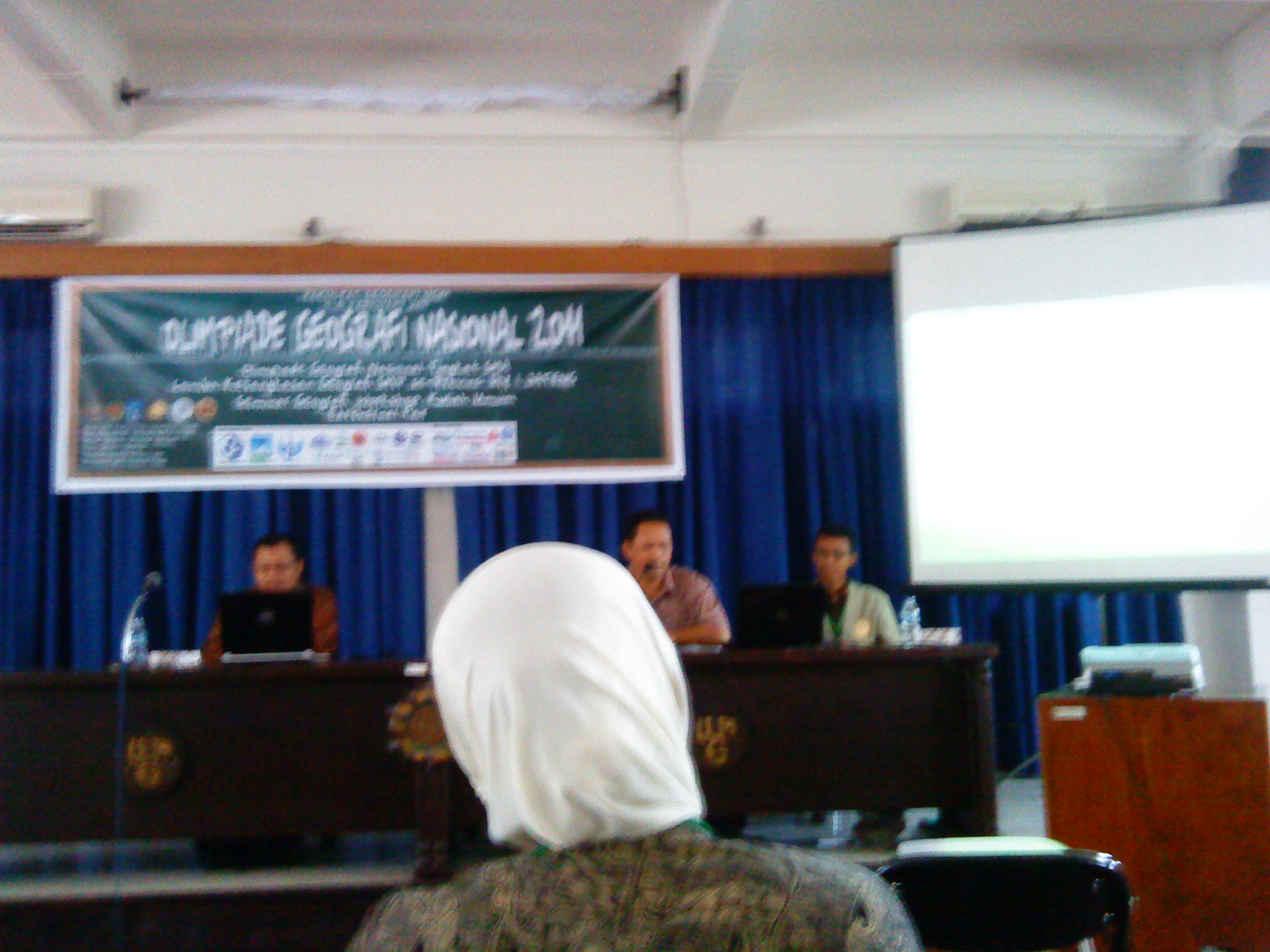 Pada hari Jumat tanggal 4 Februari 2011 saya mengikuti kegiatan Workshop sehari yang dilaksanakan di Fakultas Geografi Universitas Gajah Mada. Kegiatan Workshop ini merupakan rangkaian awal kegiatan dari Olimpiade Geografi Nasional Tingkat SMA 2011 yang mengetengahkan tema ” Kontribusi Geografi Terhadap Upaya Mitigasi Bencana dan Pengelolaan Lingkungan dalam Pembangunan Berkelanjutan di Indonesia”, yang dilaksanakan pada tanggal 4 – 6 Februari 2011. Kegiatan Olimpiade Geografi ini mayoritas diikuti oleh siswa-siswa SMA di daerah DIY dan Jawa Tengah, tetapi dari yang saya lihat kemarin diikuti beberapa sekolah dari luar Jateng dan DIY, bahkan ada teman dari Sumatera Selatan yang mendampingi siswa untuk kegiatan tersebut. Hmmm… luar biasa, sebuah semangat yang patut di tiru. Salut buat Pak Joni dari Muaraenim, semoga semakin semangat saja dan terus berkarya, dan thanks atas diskusi yang telah kita share satu sama lain.