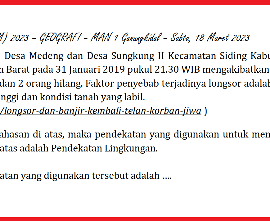 Dowload Kumpulan Soal PAS, PAT dan Ujian Madrasah Mapel Geografi Tahun 2019-2020