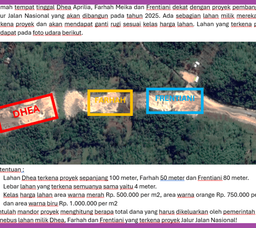 Ilmu Geografi sebagai mapel yang secara umum ada di kelas jurusan ilmu sosial, maka diperlukan juga untuk mulai membuat paket soal tersebut. Karena banyaknya kegiatan yang saya ikuti di periode bulan Oktober-November 2023 maka soal yang saya gunakan untuk ASAS tersebut bukan murni buatan saya, tetapi buatan salah satu rekan guru Geografi yang kebetulan satu group di WA Guru Geografi Indonesia. Soal tersebut kemudian sedikit saya edit dengan menambahkan nama-nama siswa saya sebagai salah satu taktik untuk menarik minat siswa saya dalam membaca soal.