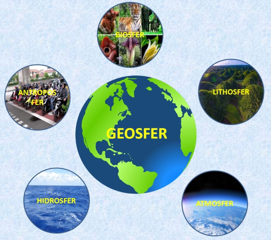 Begitu luasnya cakupan objek material (geosfer) yang dibahas dalam ilmu geografi, dan untuk lebih memudahkan dalam memahaminya di kelompokkan dalam 5 lapisan geosfer. Kelima lapisan geosfer tersebut antara lain :